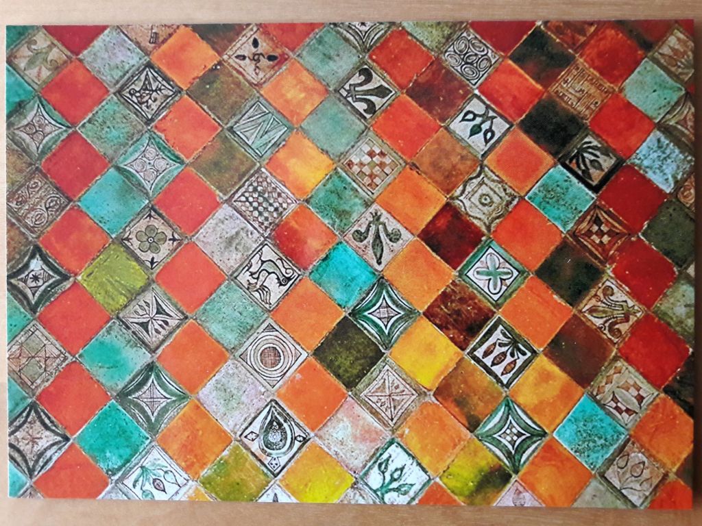 Selbstverständlich besichtigen wir den Papstpalast von Avignon auch von innen. Die Postkarte der Woche zeigt die Bodenfliesen im päpstlichen Schlafzimmer.