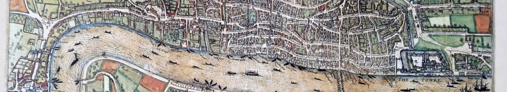 Wir tun Ungeheuerliches: Wir ignorieren Corona, Brexit und Naturgesetze. Von der Bretagne hüpfen wir einfach mal so nach London. Und gehen ins Museum! Im Museum of London finden wir einen Londoner Stadtplan von 1575. Ganz rechts am Themseufer ist der Tower of London zu erkennen.