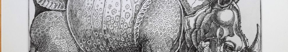 Im vorletzten Teil von Dürers Tierleben treffen wir auf das Rhinocerus von 1515. Dürer fertigte den Holzschnitt eines Panzernashorns, ohne es gesehen zu haben, basierend auf einer Beschreibung und einer Skizze. Das Tier war von Indien nach Lissabon gebracht worden und fand sein Ende bei einem Schiffbruch auf der Weiterfahrt nach Rom. Dürers Darstellung galt bis ins 18. Jahrhundert hinein als naturgetreue Wiedergabe.