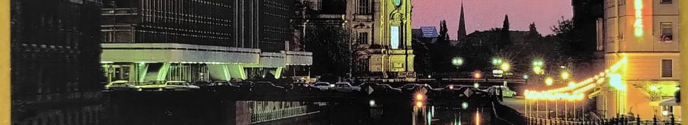 First stop: der Berliner Dom, auf der Museumsinsel direkt an der Spree gelegen. Auf der Postkarte auch zu sehen: der Palast der Republik; in den 1970er Jahren erbaut, Sitz der Volkskammer der DDR und Örtlichkeit für große Veranstaltungen, ab 1990 wegen Asbest geschlossen, zwischen 2006 und 2008 abgerissen. Seit 2013 wird an der Stelle das Berliner Schloss als Herberge für das Humboldt-Forum wiederaufgebaut. Und das hat auch eine Kuppel.
