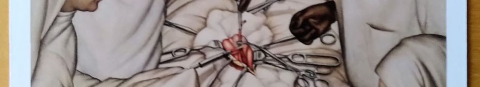Letzte Woche sahen wir eine Frau als Anführerin (wenn auch nur als Allegorie), heute sind die Rollen wieder klassisch verteilt. Christian Schads Gemälde „Operation“ von 1929 zeigt einen männlichen Operateur, die Frauen sind beobachtend-helfend.