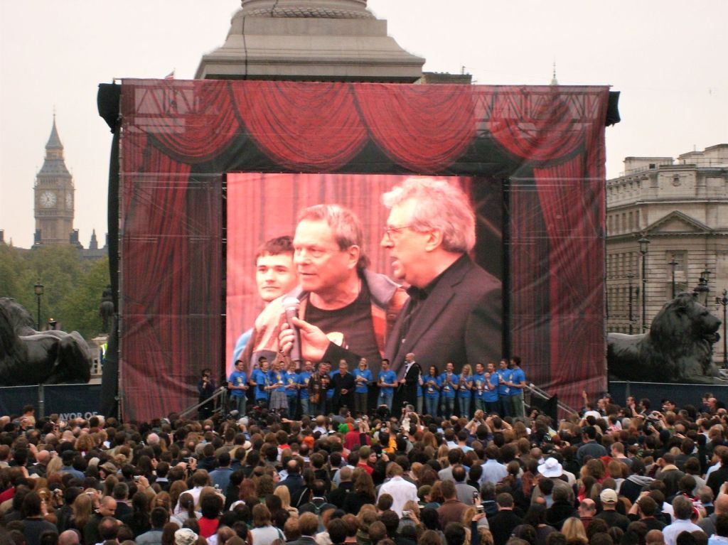 P.S. und völlig ohne Bezug zur Renaissance: Am St. George’s Day vor 15 Jahren war ich in London und geriet zufällig in die Feierlichkeiten auf dem Trafalgar Square. Seitdem bin ich Teil eines Weltrekords, nämlich des weltgrößten Kokosnuss-Orchesters. Wir gaben Monty Pythons “Always Look on the Bright Side of Life” zum Besten.