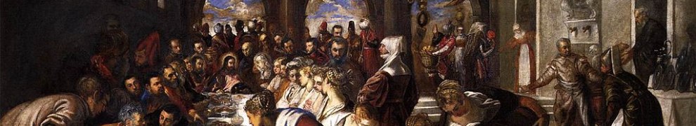 Fast zur gleichen Zeit wie Veronese hielt auch Tintoretto die Hochzeit zu Kana in einem Gemälde fest. Im Vergleich der Werke wird die Unterschiedlichkeit der beiden Künstler deutlich. Tintorettos Festgesellschaft feiert in einem zeitgenössisch ausgestatteten Innenraum mit typisch venezianischer Kassettendecke. Auf Prunk und anekdotische Details verzichtet Tintoretto im Gegensatz zu Veronese. Durch die Wahl, die Tafel von der Schmalseite aus darzustellen und Jesus und Maria ans andere Kopfende zu platzieren, rücken die beiden in eine große Entfernung. Im Vordergrund rechts füllen Dienerinnen das verwandelte Wasser aus großen Tonkrügen in Weinkaraffen, bestaunt von einer dahinter sitzenden Frau. Auch die Gruppe links bespricht angeregt das überraschende Ereignis. Der Fokus des Bildes liegt dadurch auf dem Wunder, das Jesus gewirkt hat.