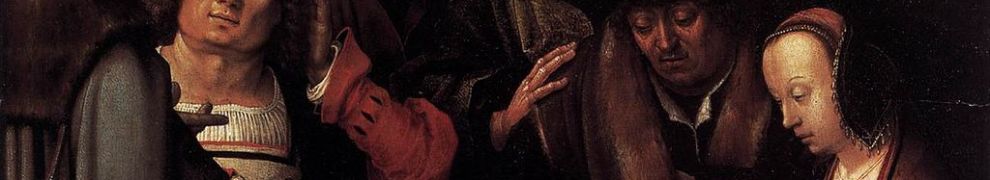 Von Engeln zum Spiel der Könige. „Die Schachpartie“ (um 1508) von Lucas van Leyden ist eines der frühesten Genrebilder. Ein Mann und eine Frau spielen gegeneinander, die umstehenden Personen verfolgen das Geschehen mehr oder weniger aufmerksam. Es scheint, als würde die Frau ihren Mitspieler mit dem nächsten Zug in Bedrängnis bringen – dieser hat seine Mütze abgenommen und führt die Hand mit nachdenklicher Geste zum Kopf. Da das Schachspiel als Metapher für Liebe und Liebesspiel galt, kann das Gemälde durchaus als Warnung vor der „List“ der Frauen gedeutet werden.