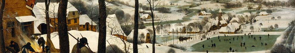 Der Winter ist da. Es liegt Schnee und es ist kalt. So auch auf Pieter Bruegels Gemälde „Die Jäger im Schnee“ (1565). Vor den Jägern mit ihren Hunden liegt eine schneebedeckte Landschaft mit schroffen Bergen und kahlen Bäumen. Wir sehen die Häuser einer Dorfgemeinschaft, viele Bewohner gehen fleißig ihrem Tagwerk nach. Doch es ist auch Raum für Fröhlichkeit: die kleinen Figuren auf den zugefrorenen Teichen laufen Schlittschuh und spielen zeitgenössische Varianten des Eisstockschießens und des Schneegolfs.