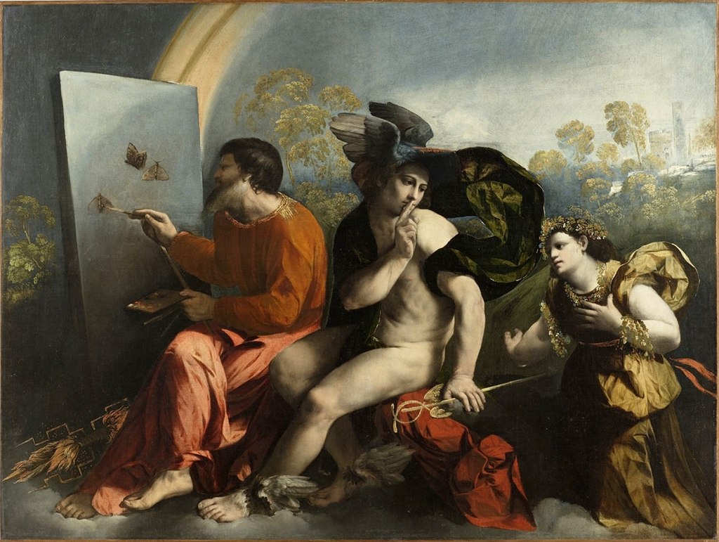 Hans von Aachen (1552-1615), ab 1592 Maler am Prager Hof Rudolfs II, war bekannt für seine mythologischen und allegorischen Darstellungen, zu denen „Der Sieg der Wahrheit“ (um 1598) gehört. Die Wahrheit in Gestalt einer nackten Frau („die nichts zu verbergen hat“), sucht Schutz bei Justitia, der Gerechtigkeit (mit ihren Attributen Waage und Schwert). An ihrer Seite ein mächtiger Löwe, Zeichen für die gerechte Herrschermacht. Besiegt am Boden liegt die Gestalt des Betrugs, ein bärtiger Mann, dem der volle Geldbeutel und die Maske der Falschheit im Fall entglitten sind. Von Justitia und dem Löwen beschützt sehen wir links im Hintergrund drei Frauen einander zugewandt: Abundantia mit dem Füllhorn symbolisiert Reichtum und Überfluss, Pax mit dem Ölzweig den Frieden und Concordantia die Eintracht. Das Gemälde lässt sich als Wunsch nach Frieden, Harmonie und Wohlstand lesen. Mit dieser Deutung schließe ich die Jahresreise durch die Renaissancemalerei und blicke trotz aller Schrecklichkeiten hoffnungsfroh ins neue Jahr. Allen alles Gute dafür!